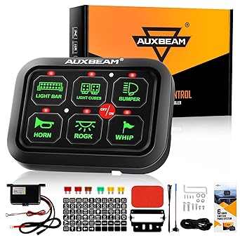 Auxbeam 6 Gang Switch Panel Automatic Dimmable Gc60 Auxiliary 6 Gang Switch Controller For Truck Atv Utv Suv Offroad Car Marine 12v 6 Switch Relay Panel Waterproof 2 Years Warranty Green Light Toggle Amazon Canada